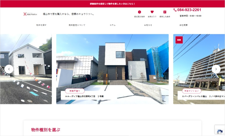 「有限会社キョウリツ」様の不動産ポータルサイトをTCDテーマGRAVITYで構築いただきました。広島県福山市を中心に多数の物件が掲載されています。