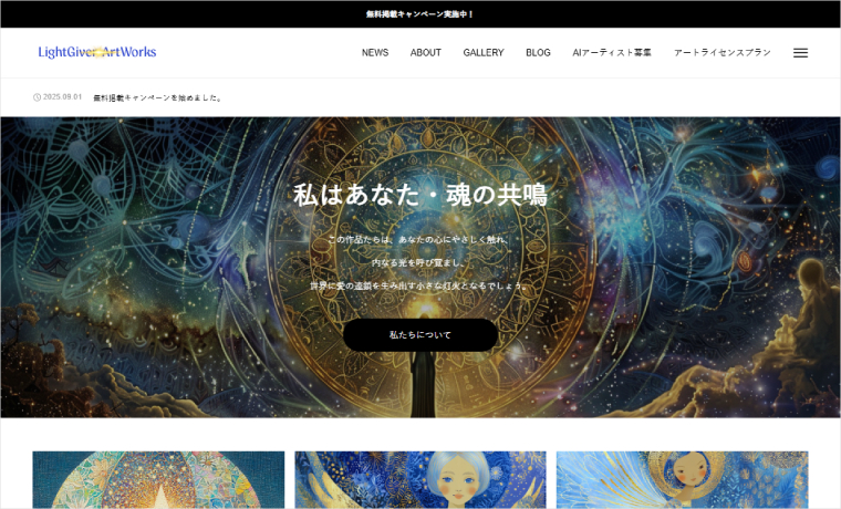 「Light Giver Art Works」様のウェブサイトにARTISANをご利用いただいています。