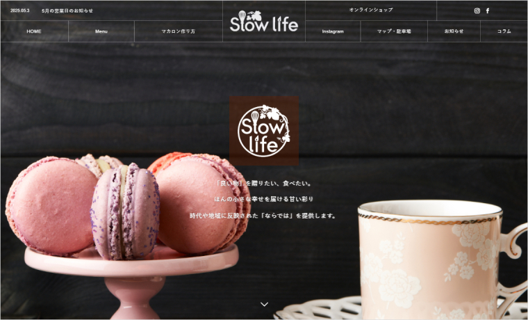 山梨県甲府市の洋菓子店「Slow life」様のウェブサイトです。Treeを活用いただいています。