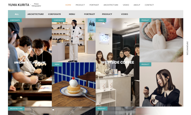 フリーランスフォト&ビデオグラファーの「YUMA KURITA」様のウェブサイトにNUMEROをご利用いただいています。