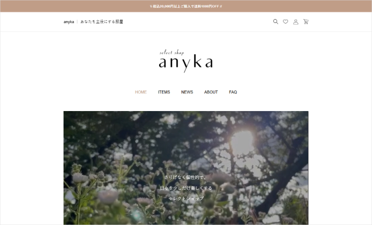 合同会社KANAE様が運営するオンラインセレクトショップ「anyka(エニカ)」に、TCDテーマAnkleをご採用いただきました。