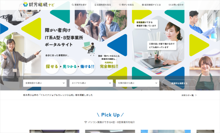一般社団法人就労支援センター様が運営する就労支援情報サイト「就労継続ナビ」では、GENSENをご採用いただいております。
