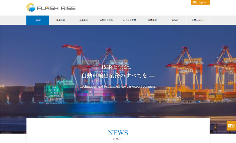 愛知県に本社を構える「有限会社 FLASH RISE」様のコーポレートサイトです。NANOをご利用いただいています。