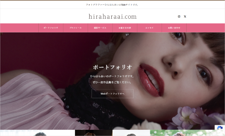 ポートレートを中心に活動されている「ひらはらあい」様のウェブサイトには、撮影実績を丁寧にまとめたポートフォリオも掲載されています。写真のクオリティの高さはもちろん、被写体の魅力を最大限に引き出す視点と感性が随所に表れていると感じます。ぜひご覧ください。