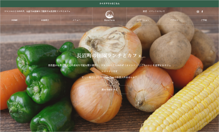道の駅マオイの丘公園から車で約5分の場所に位置する「Bon Fam」様のウェブサイトです。TCDの飲食店向けテーマTreeをご利用いただいています。
