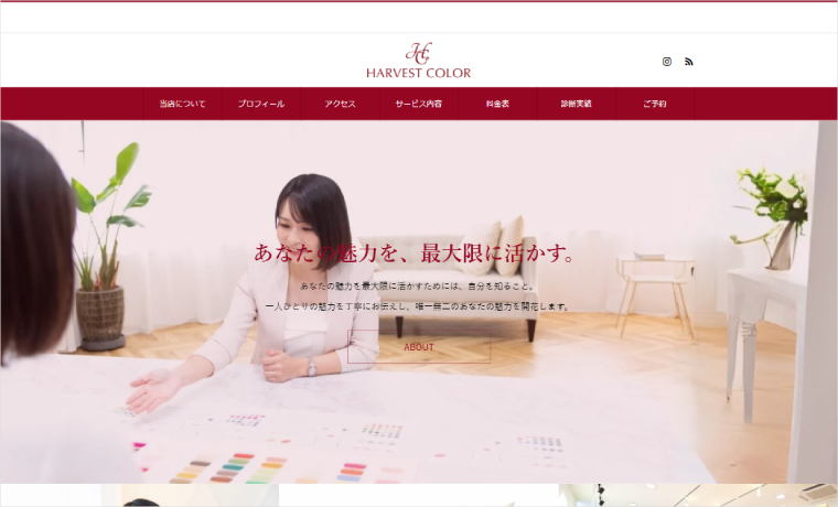 トータルビューティーサロン「Harvest Color」様のウェブサイトです。HEALを活用いただいています。