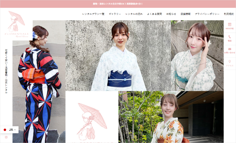 浅草着物・浴衣レンタル「A’s ESSENTIALS」様のウェブサイトにSERUMをご利用いただいています。こちらのサイトはTNGC Graphics様のご制作サイトになります。