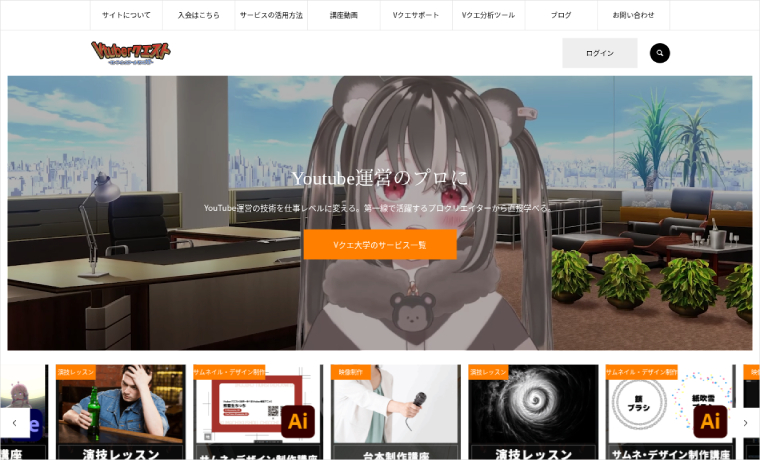「YouTube運営のプロを育てる」をコンセプトに事業を展開されている「Vクエ大学」様のウェブサイトです。EVERYをご利用いただいています。