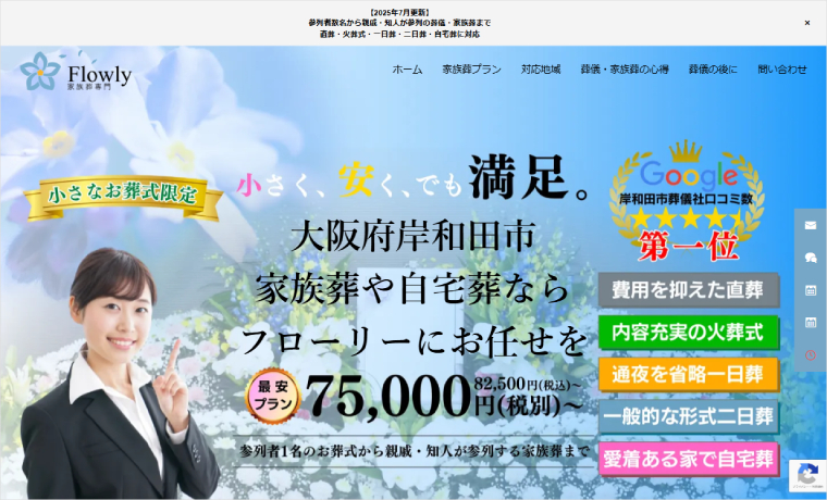 大阪府岸和田市の「家族葬専門フローリー」様のウェブサイトです。CUREをご利用いただいています。