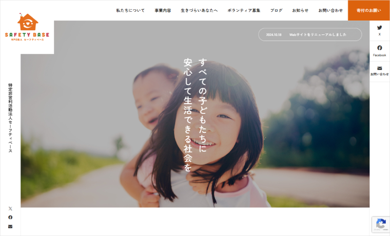 「特定非営利活動法人セーフティベース」様のウェブサイトに、SERUMをご利用いただいております。