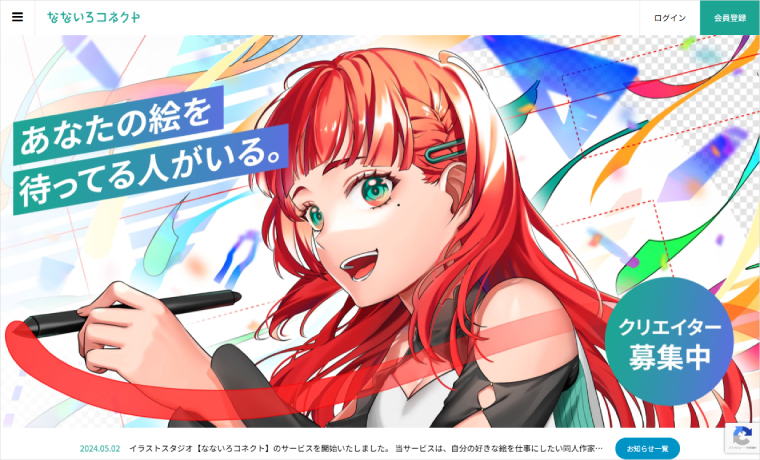 こちらのサイトは、クリエイター向けイラストスタジオになっており、描く機会を広げたい方のために作風に合ったお仕事紹介等のサポートを行われています。初めての方は、以下ページをご覧ください。