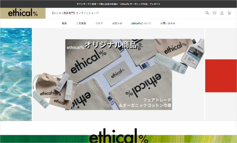 エシカル商品専門オンラインショップ「ethical%」様のウェブサイトにRIKYUを採用いただきました。