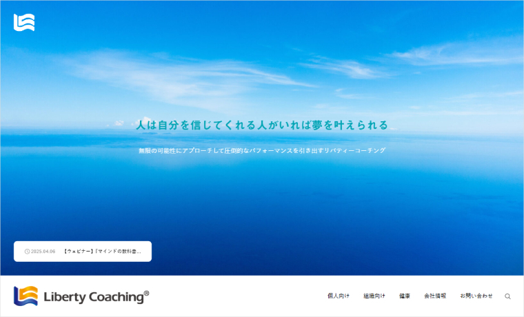 コーチングおよびコーチングプログラムの提供等の事業を展開されている「リバティーコーチング株式会社」様のウェブサイトです。MONADをご利用いただいています。