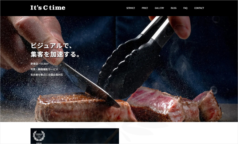 名古屋を拠点に飲食店・EC向け写真・動画撮影サービスを提供されている「It’s C time」様のウェブサイトです。OOPS!をご利用いただいています。