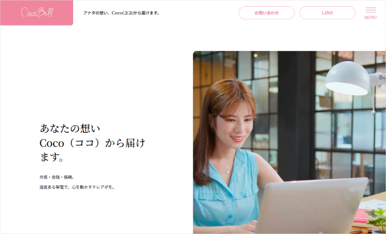 テレアポ代行サービスを提供されている「CocoBell」様のウェブサイトです。Cherieをご利用いただいています。