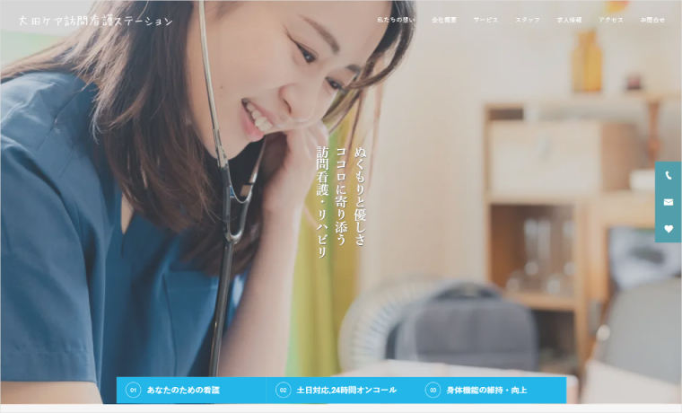 「大田ケア訪問看護ステーション」様のウェブサイトです。CUREをご利用いただいています。