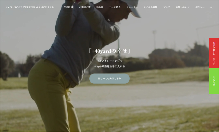 千葉県木更津市にあるゴルフ特化型パーソナルトレーニングジム「SYN GOLF PERFORMANCE LAB.」様のウェブサイトです。QUALIAをご利用いただいています。