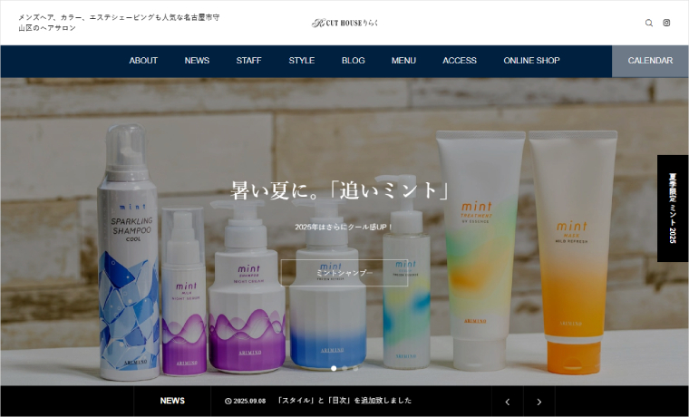 愛知県名古屋市の「CUT HOUSE りらく」様のウェブサイトです。HOMMEをご利用いただいています。