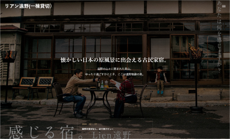 岩手県遠野市にある古民家一棟貸し切りの宿「リアン遠野」様のウェブサイトをご紹介いたします。自然豊かな里山に佇む古民家をリノベーションされた宿です。WordPressテーマTENJIKUをご利用いただいています。