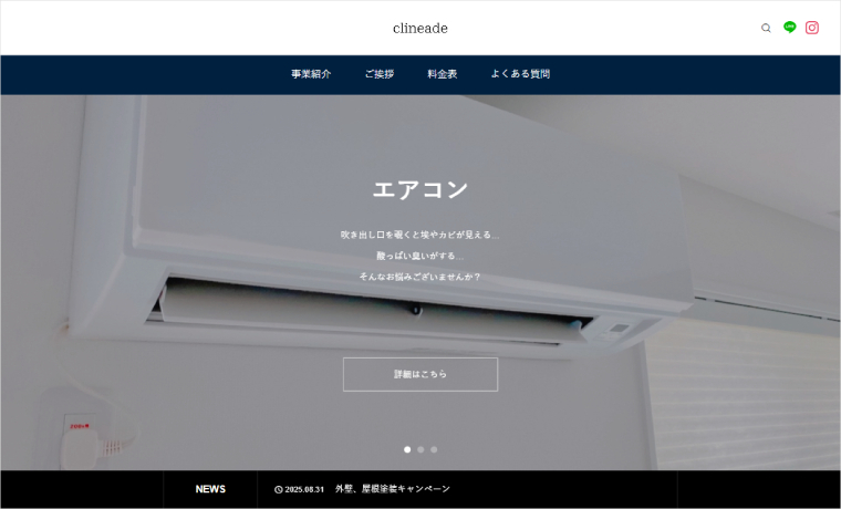 また、施工事例ページでは、具体的な実績が丁寧に紹介されています。実際の仕上がりを見ることができるため、Clineade様の高い技術力と誠実な対応が伝わり、初めての方でも安心して依頼できる内容となっています。