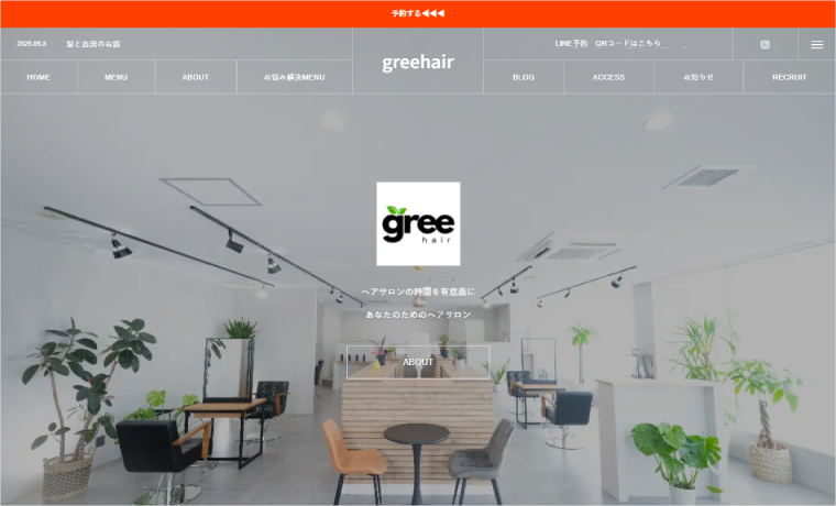 飲食店のウェブサイトで利用されることが多いTreeですが、今回の「greehair」様の事例は、異業種での活用事例として参考になるかと思います。サロンの雰囲気をオンライン上で表現し、差別化を図るための実例と言えます。ぜひご覧ください。