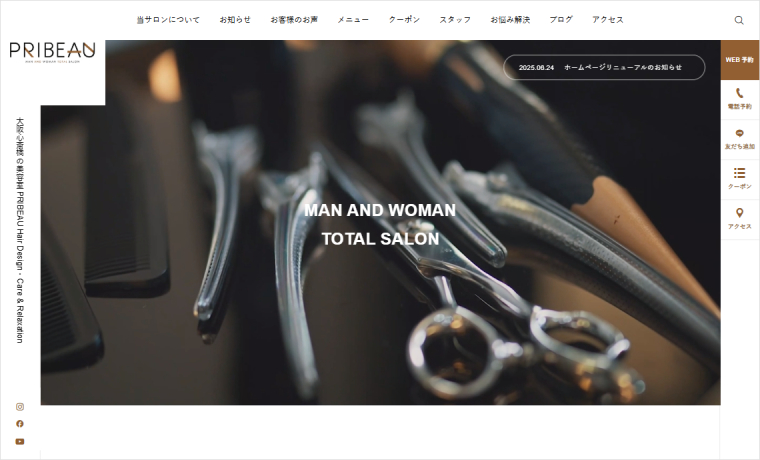 大阪心斎橋の美容室「プリビュー(PRIBEAU)」様のウェブサイトです。